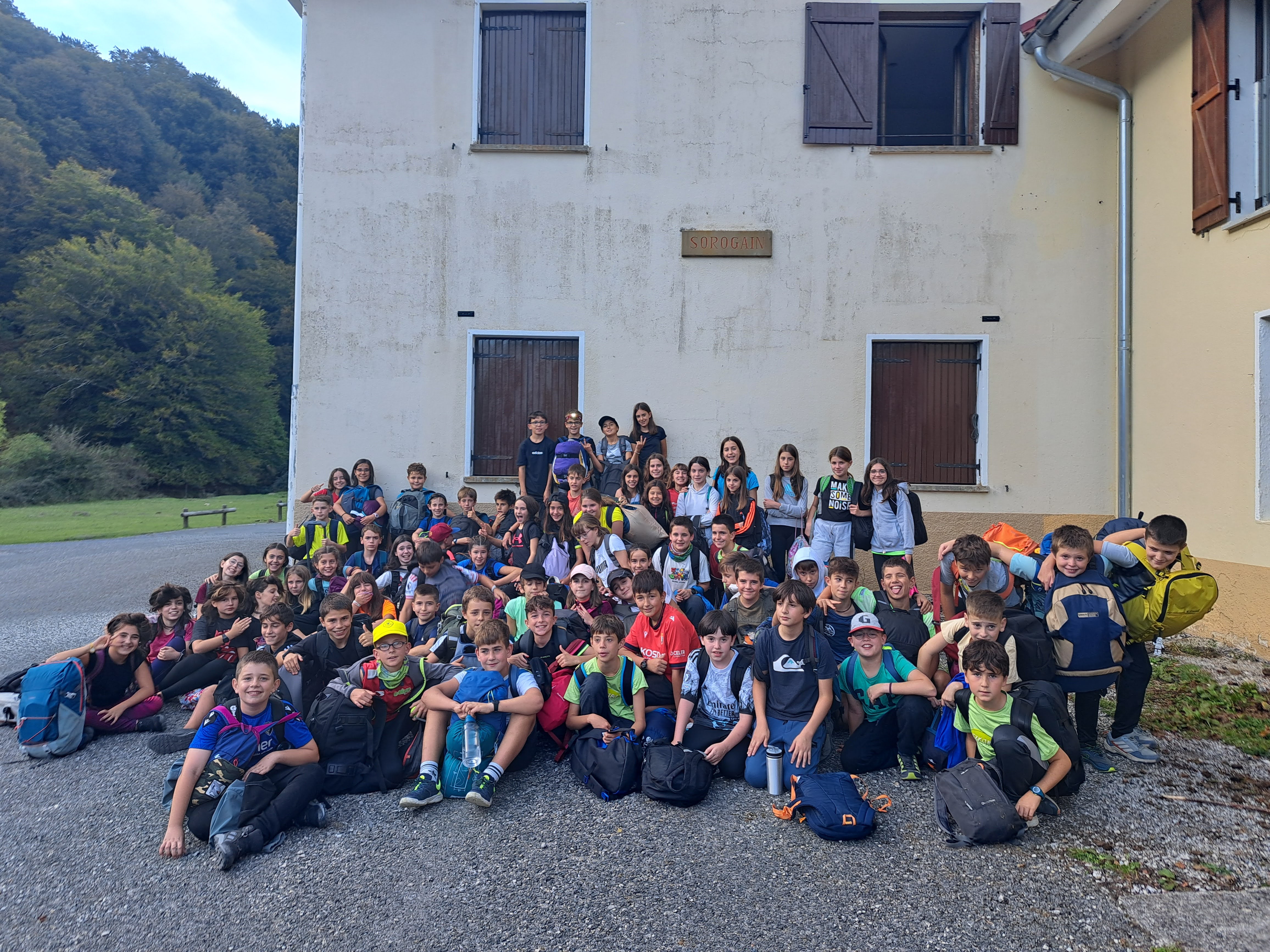 A la mañana siguiente, cogieron las mochilas y caminaron hasta la escuela de Urepele, donde recibieron una cálida acogida por parte del alumnado local.