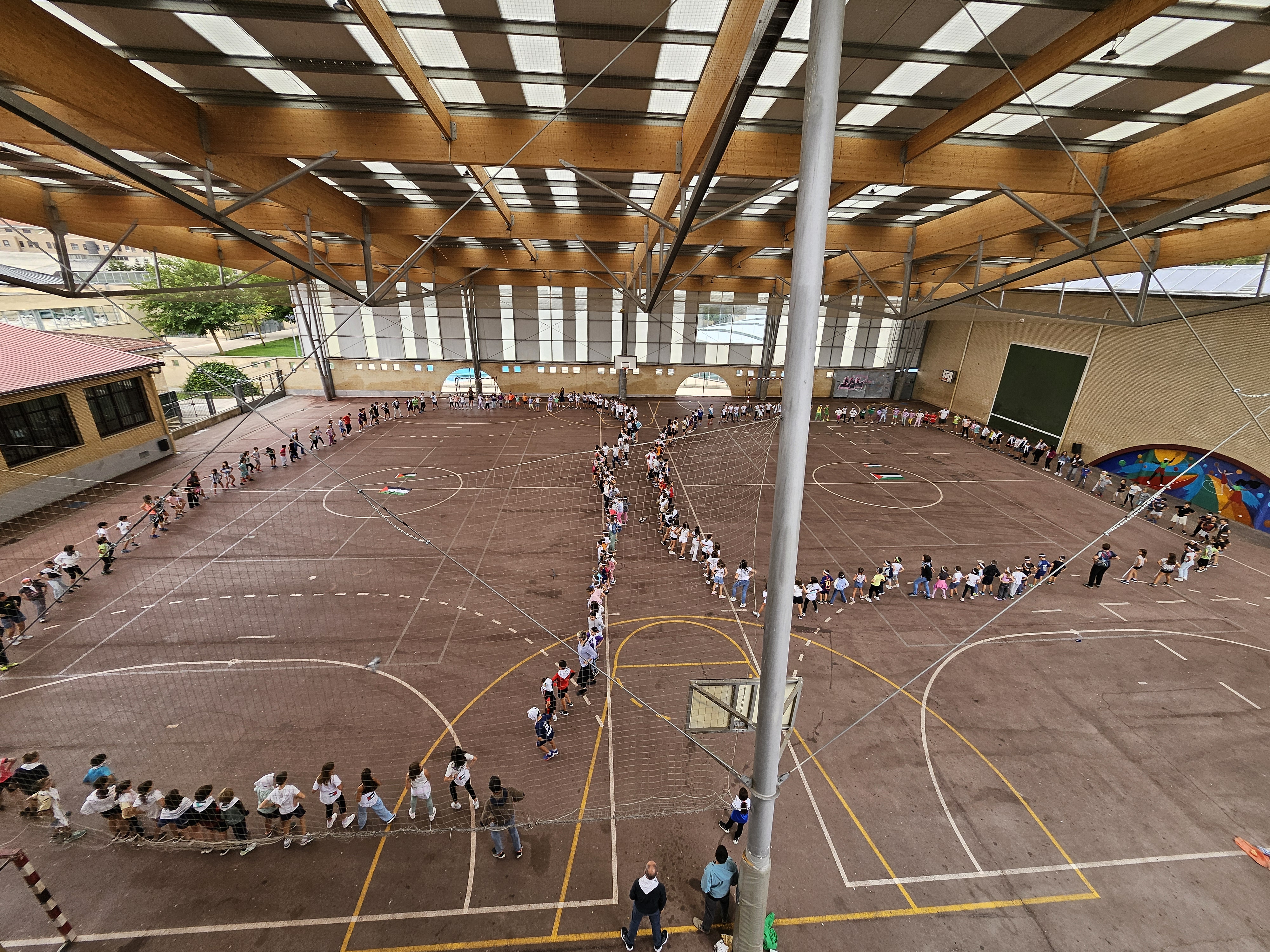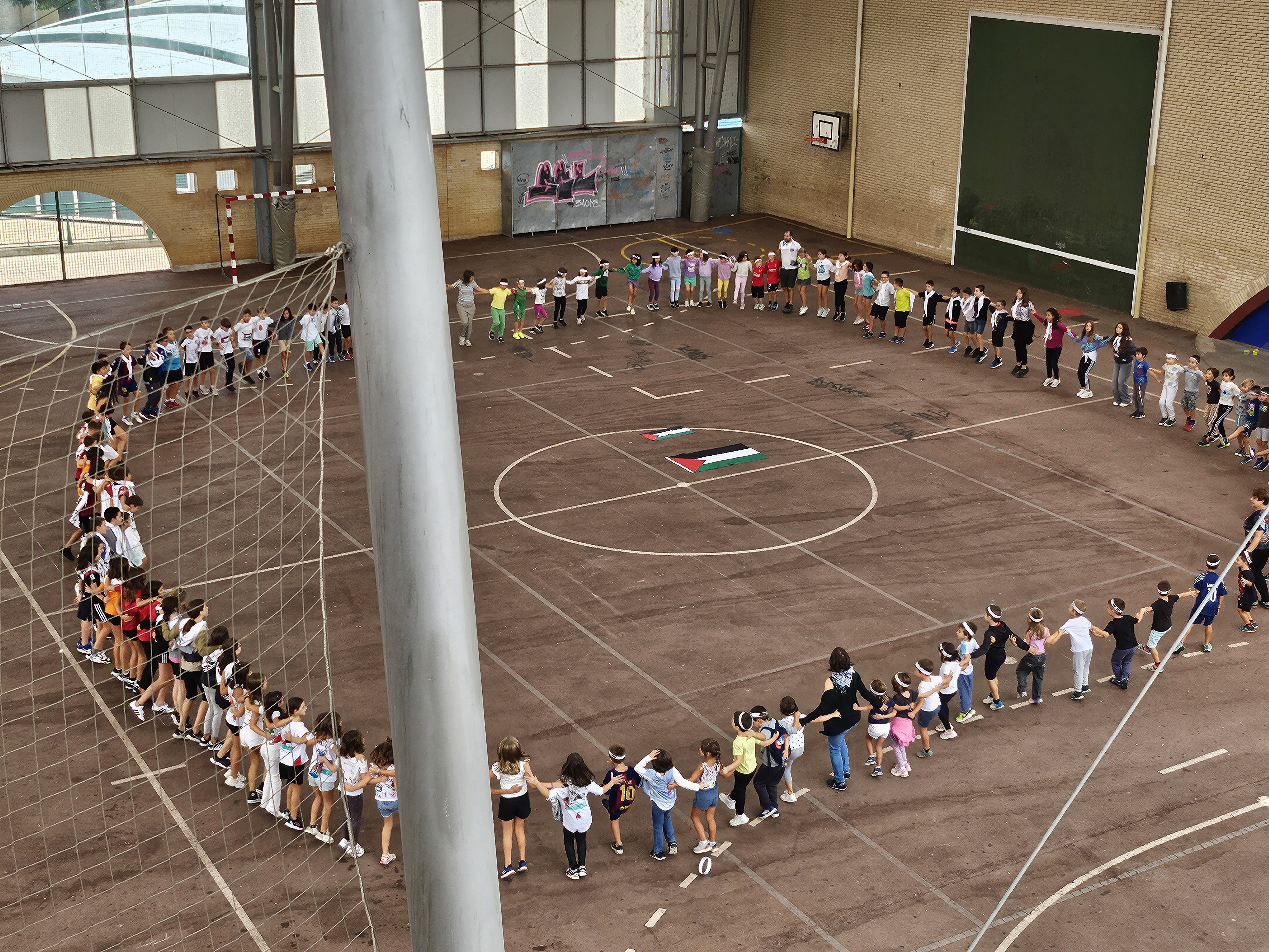 Ezkabako ikasle eta irakasle guztiak patioan bildu gara dabke dantza tradizionala egiteko, palestinar herri honi elkartasuna eta babesa adierazteko.